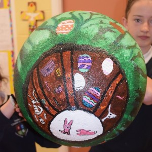 Schools were provided with a big white egg and paints and asked to decorate the egg in whichever way they wished.